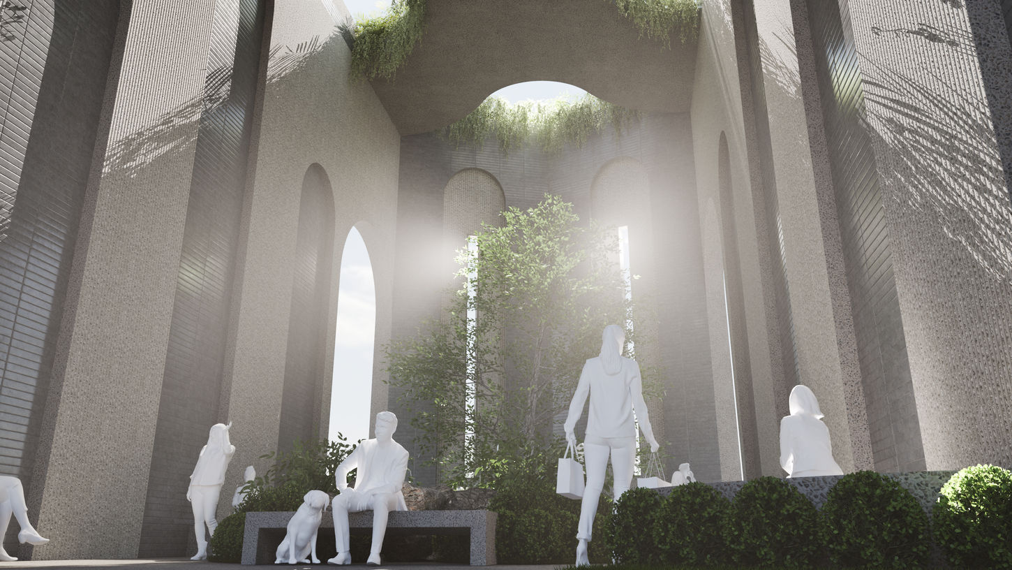 This project envisions a stunning modern public entry that serves as the welcoming gateway to a contemporary office block. Designed with an emphasis on natural light and spaciousness, the entry features a soaring high ceiling that enhances the sense of openness. The entry is beautifully adorned with lush vegetation that not only adds visual appeal but also creates a connection to nature. This biophilic design approach encourages relaxation and enhances the overall experience for visitors and employees alike. Pathways meander through the landscape, guiding guests toward the main office area while providing cozy seating nooks for informal gatherings.